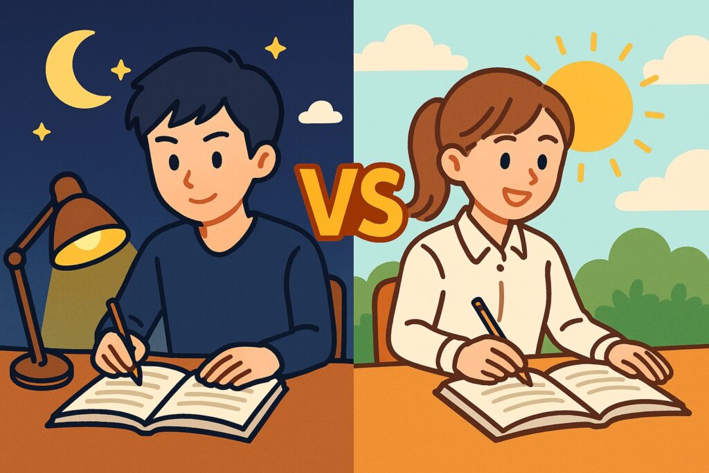 勉強する時間帯について「夜型で集中する派」と「朝型で効率が良い派」に分かれることがあります。どちらが正解というわけではなく、それぞれにメリットがあります。ここでは夜勉と朝勉の特徴を比較し、自分に合ったスタイルを見つけるヒントを紹介します。