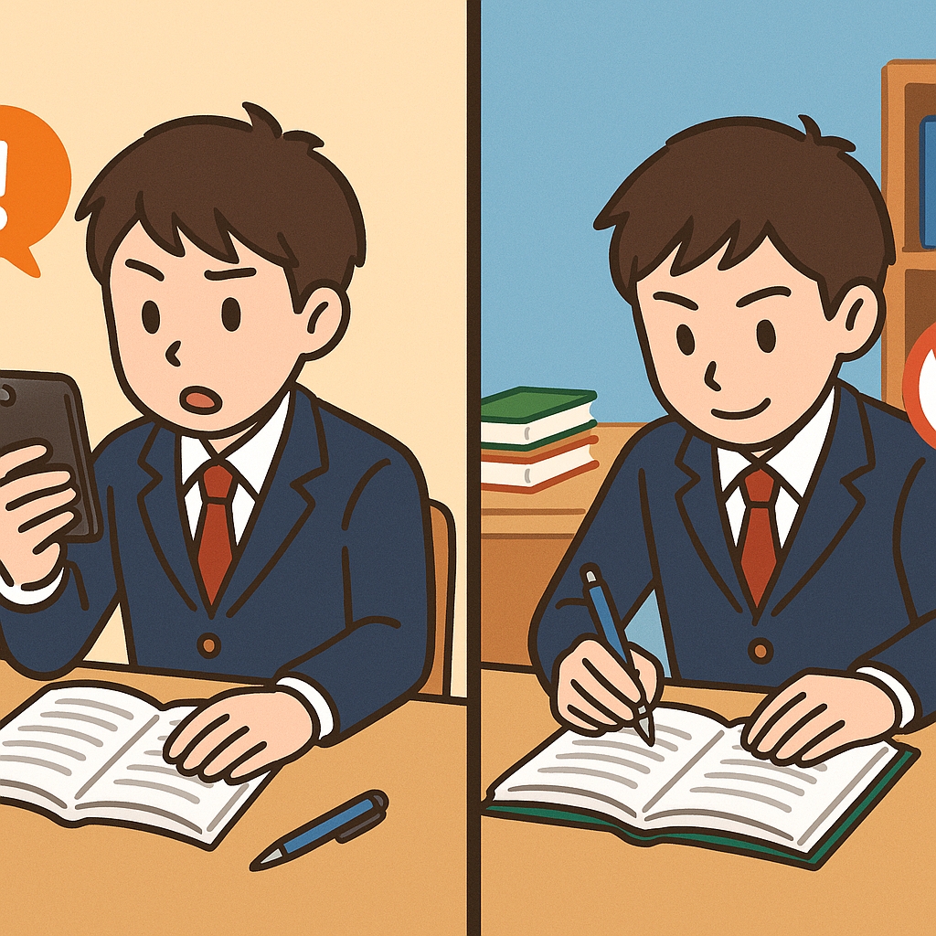 スマホを使わないだけでなく、机の上を整理して勉強に必要なもの以外を置かないことも大切です。また、図書館や自習室など「スマホを触りにくい環境」に身を置くのも効果的です。環境を工夫することで、意志に頼らずとも集中できる仕組みを作ることができます。