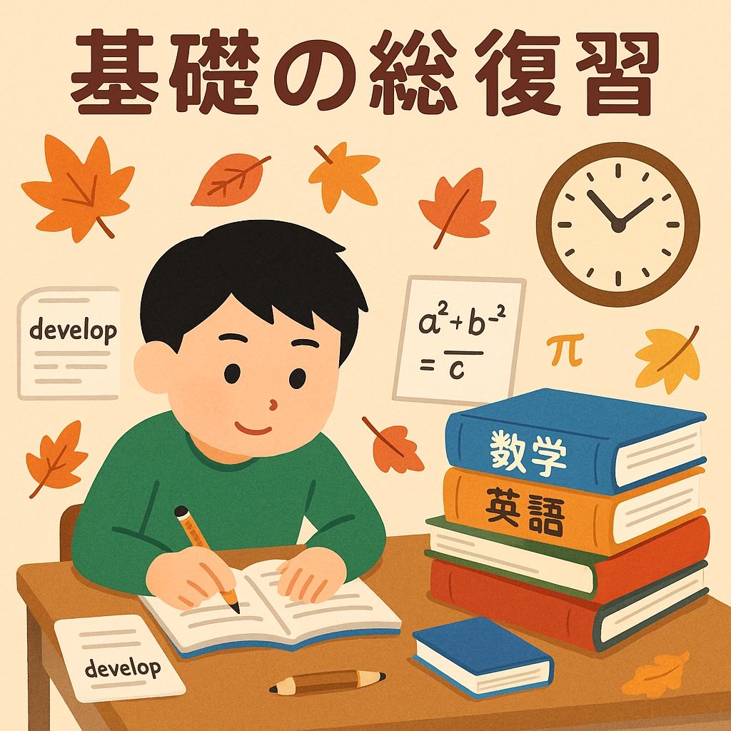 秋は「基礎の総復習」に最適な季節です。ここで基礎を徹底的に固めることで、冬からの過去問演習や実戦形式の学習にスムーズに移行できます。「わかっていたのに解けない」を減らすことが、最短で得点力を伸ばすカギとなります。今のうちに基礎を完璧に仕上げましょう。